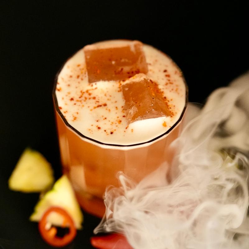 Mezcal, Aperol, Fresh Pineapple Juice, Fresh Lime Juice, Sprinkle of Espelette