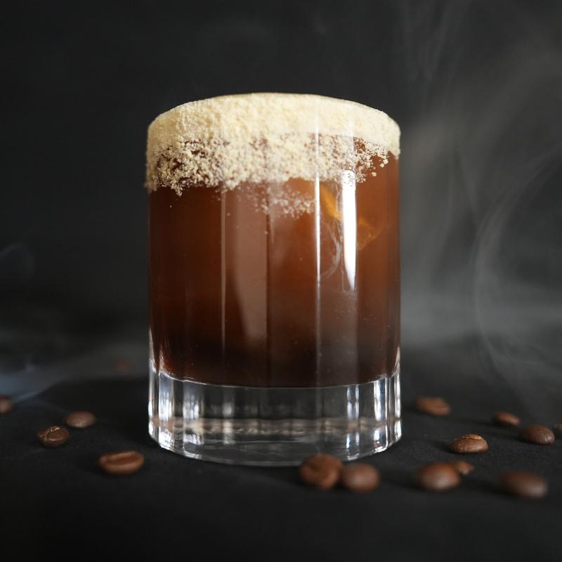 Tuaca, Mezcal, Espresso, Vanilla Infused Maple Syrup